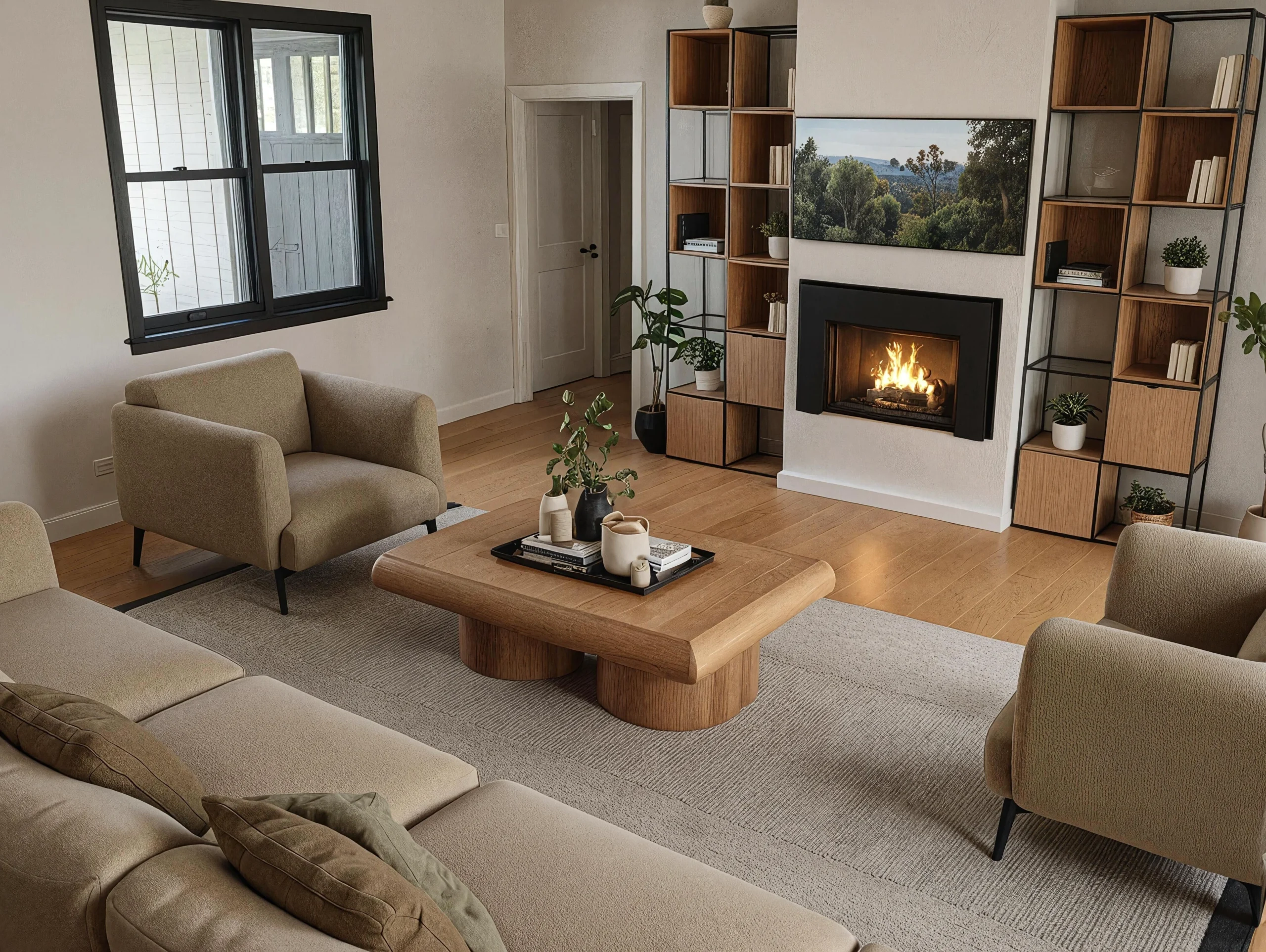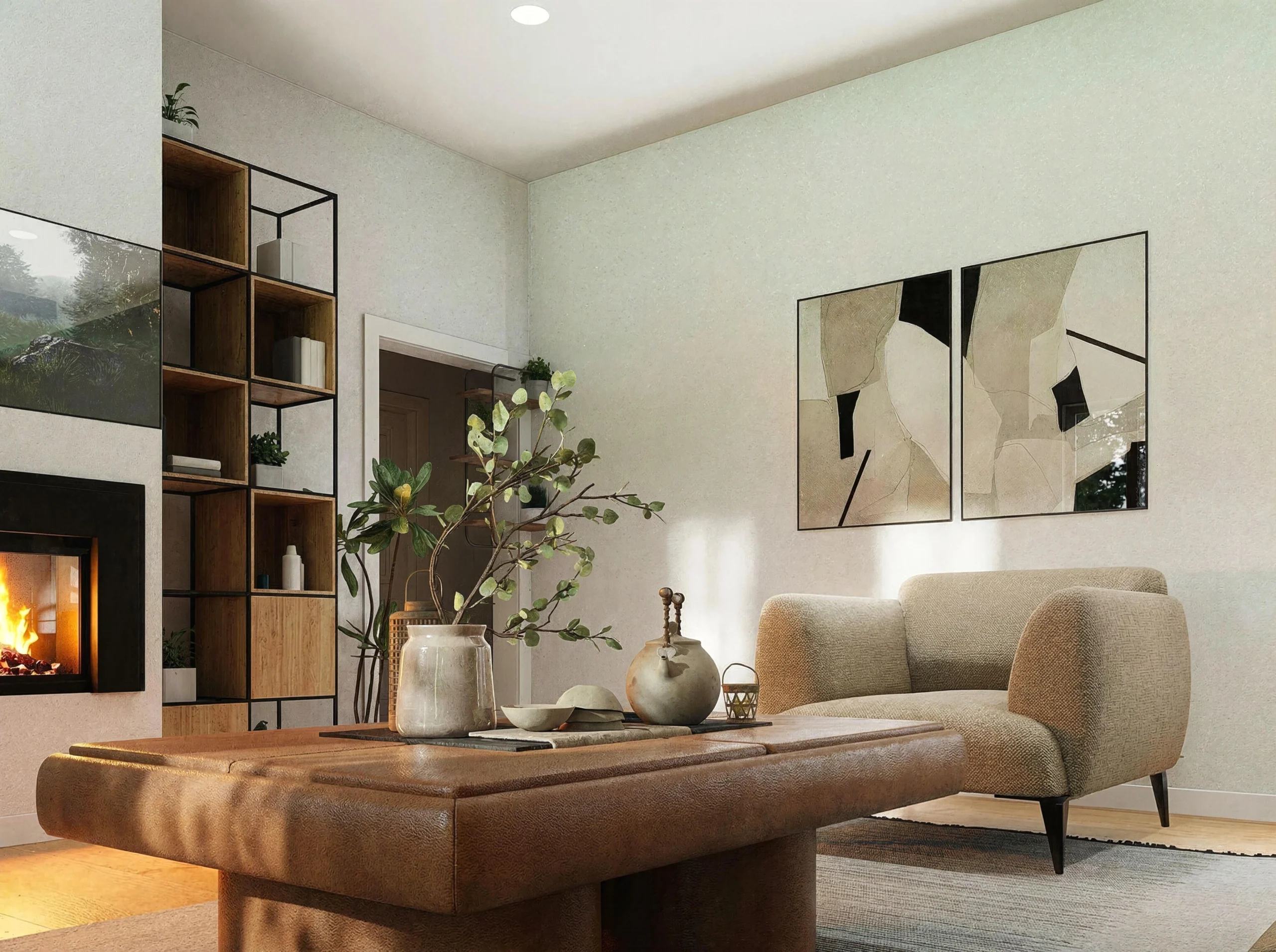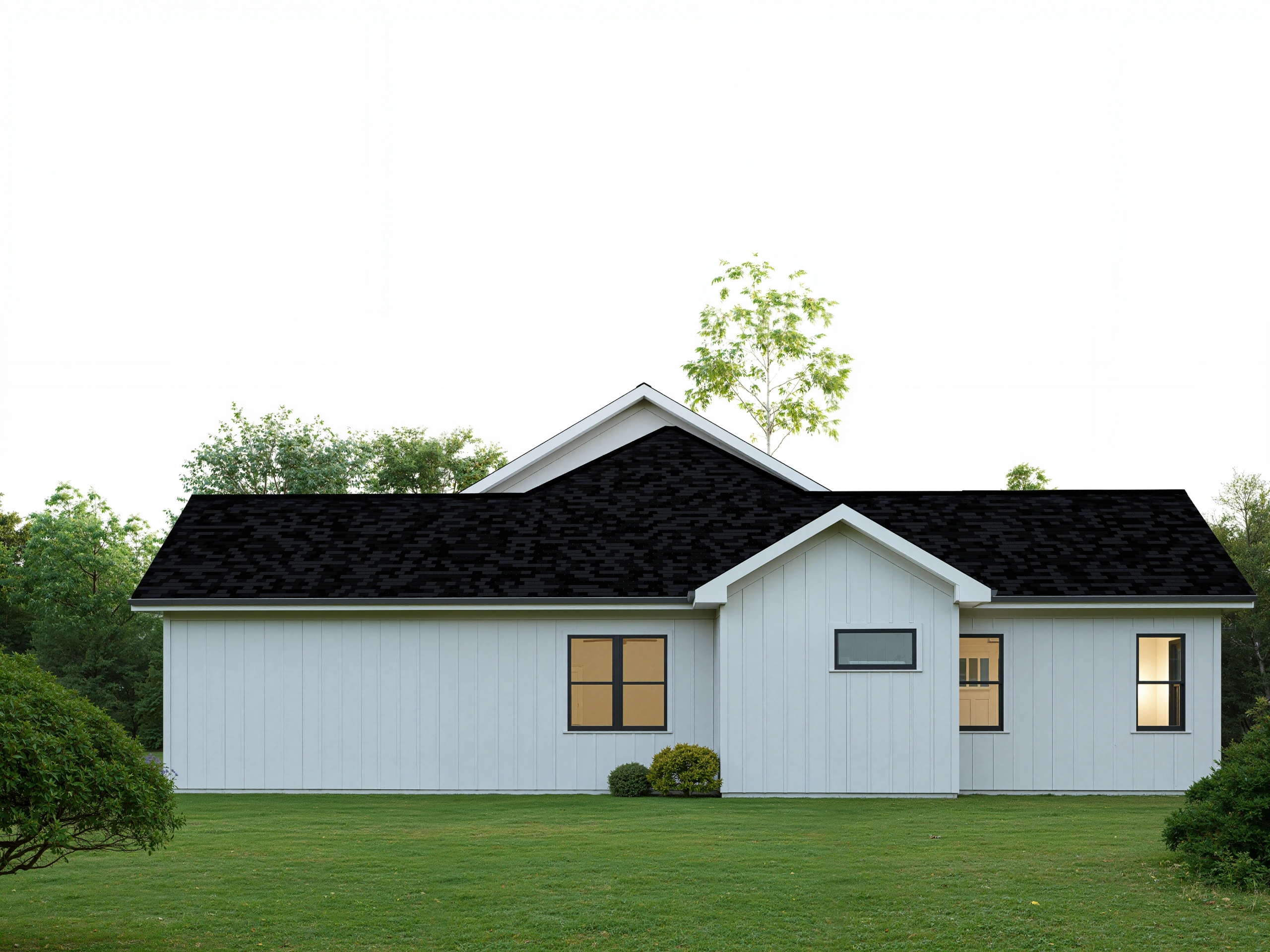 The Autumn Bend offers the perfect balance of sprawling ranch-style living and modern architectural flair. With a generous 2,390 square feet of living space, this home is designed for larger families who need room to breathe without the hassle of stairs. The exterior combines crisp vertical siding with warm timber accents and a welcoming front porch, creating an inviting façade that feels right at home in both suburban and rural settings.