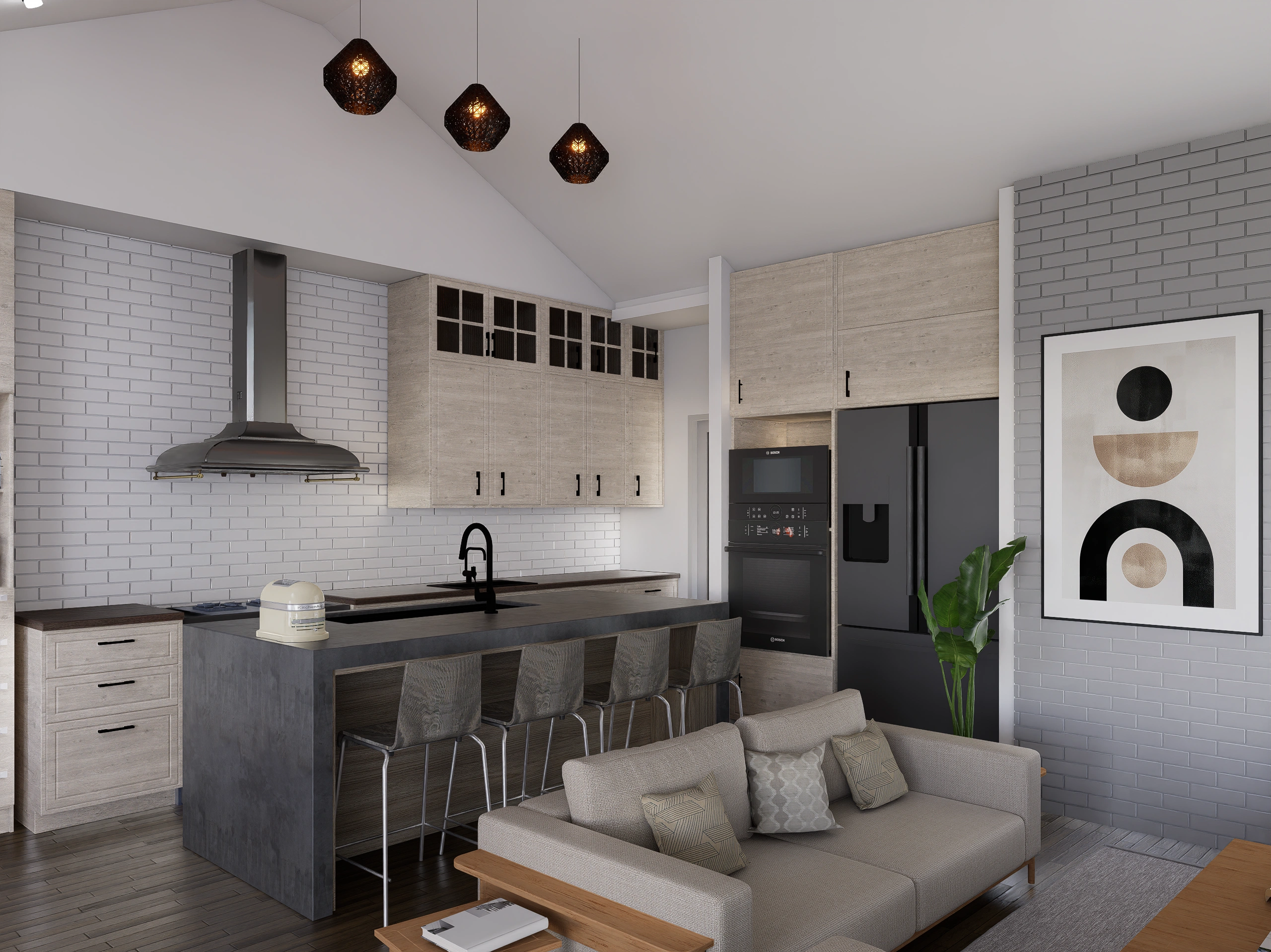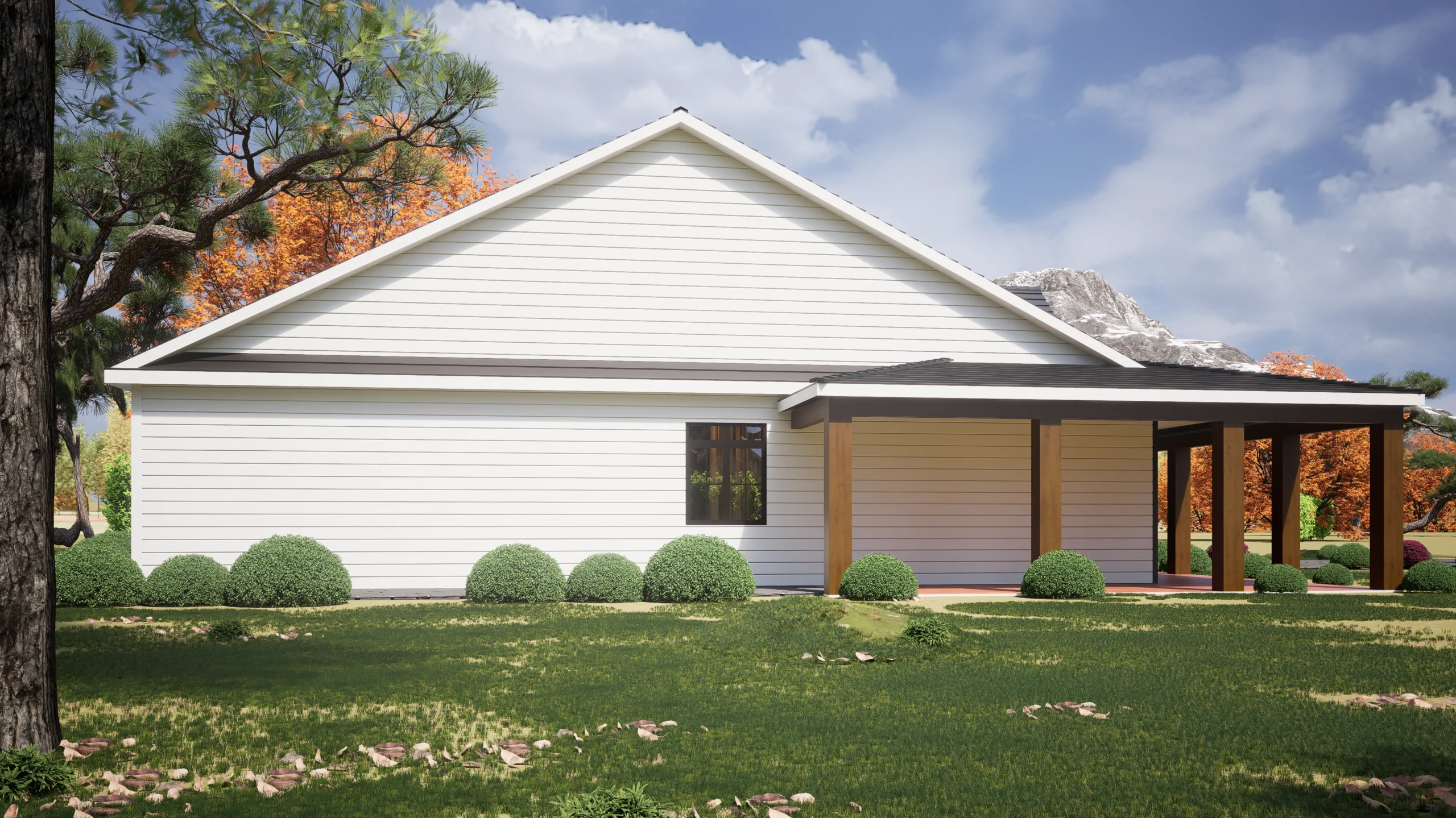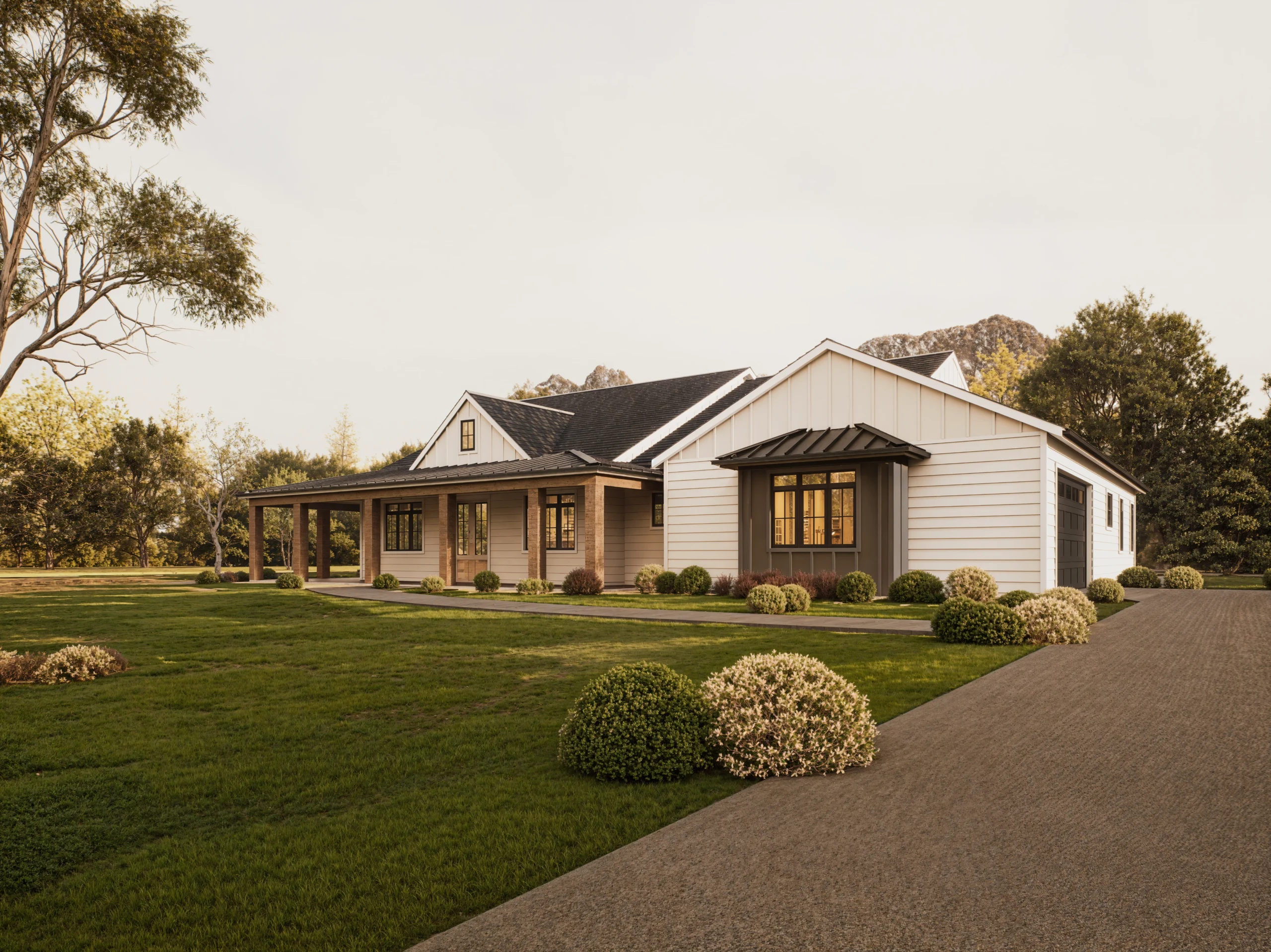 The Quartz Square captures the essence of modern country living with its signature Wrap-Around Porch (46′ x 8′), perfect for enjoying views from multiple angles. The exterior blends crisp white horizontal siding with warm wood columns and a dark metal roof accent, creating a timeless curb appeal.