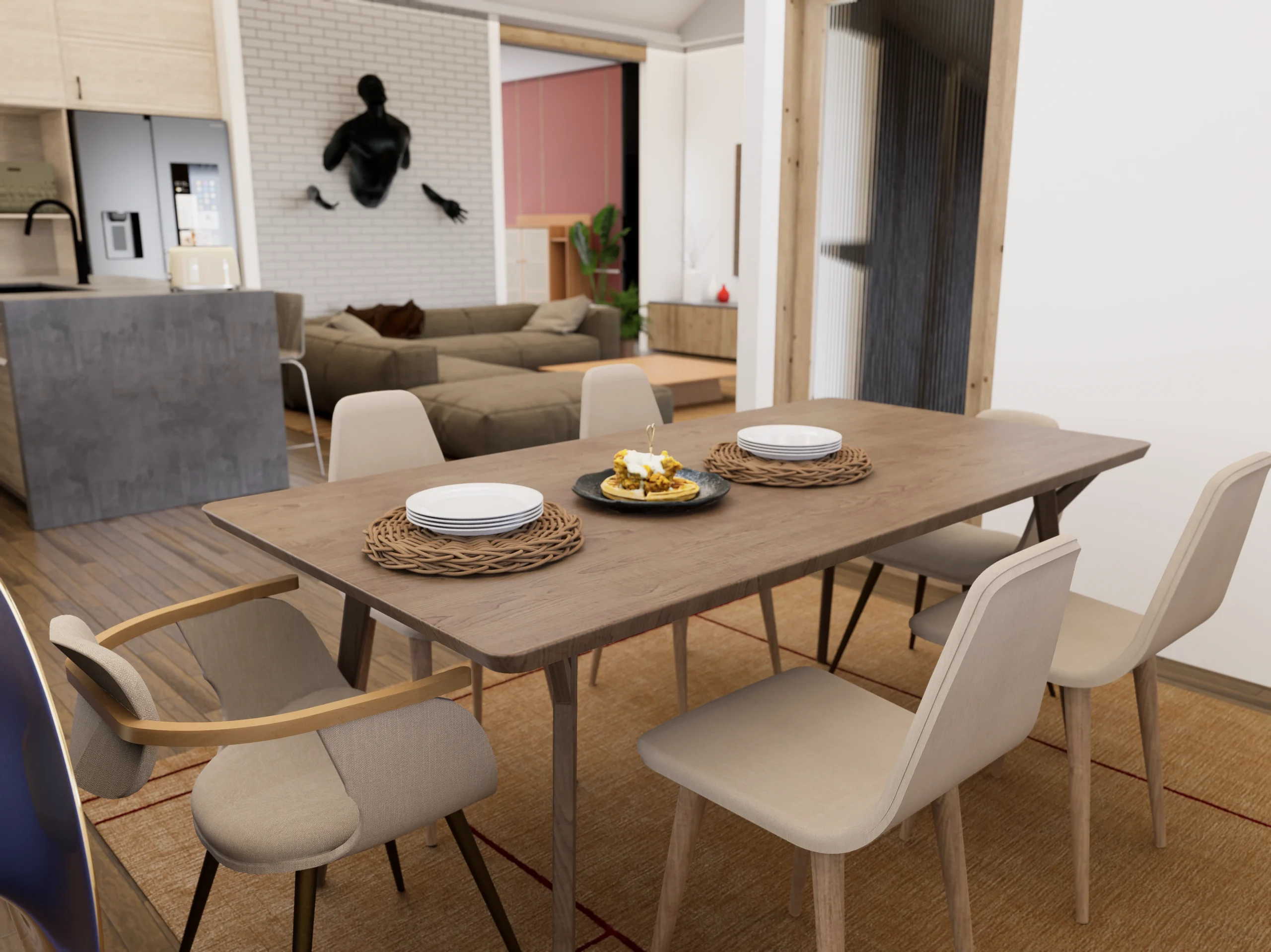 • Functional Mudroom: Entering from the garage, you pass through a large Mud Room with a bench and a dedicated Laundry room, keeping the main house clutter-free.