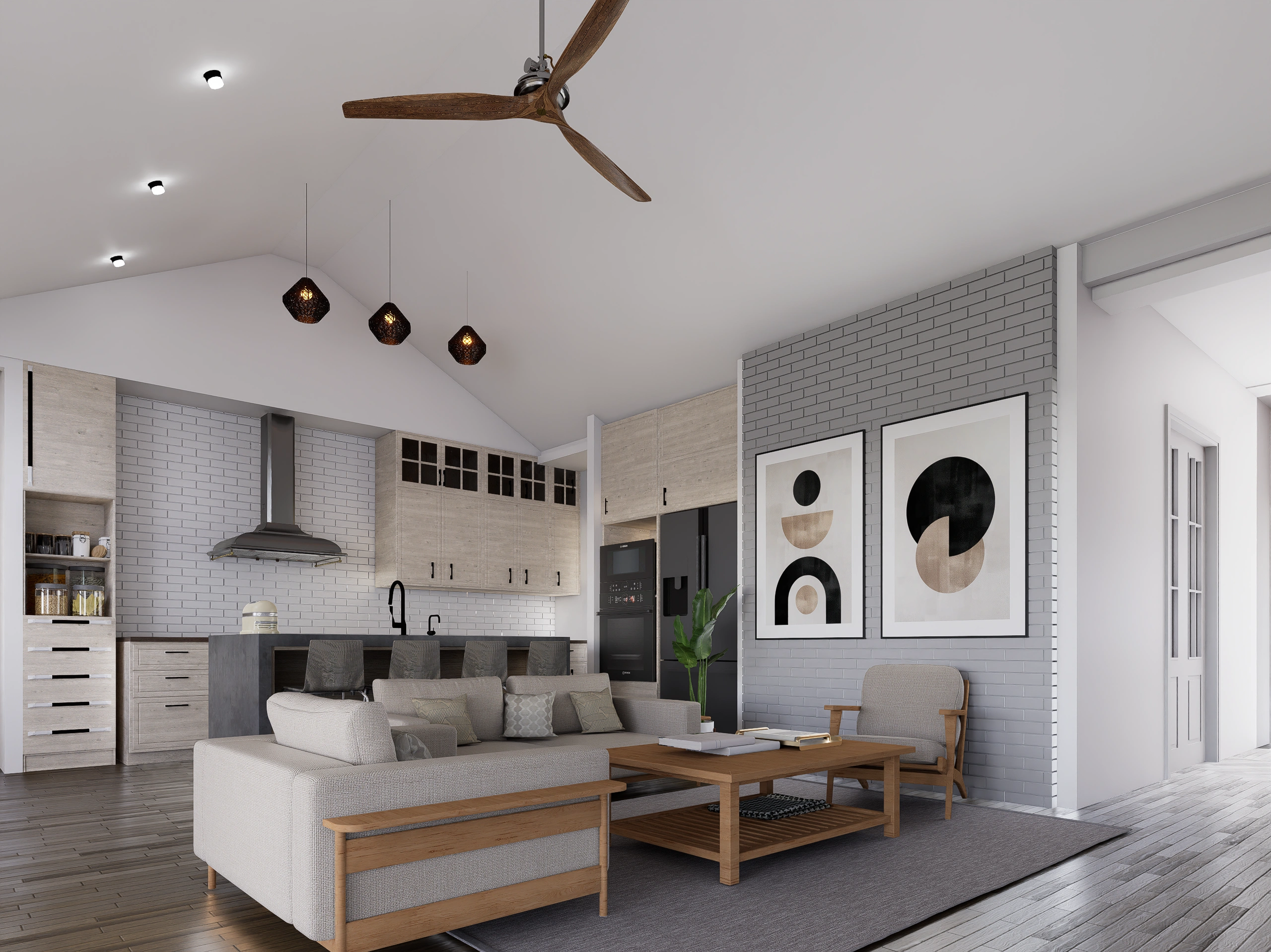 • Open Concept Living: The vaulted Living Room (17′ x 16′) is the heart of the home, featuring a fireplace and sliding glass doors that open to the rear Covered Patio. It flows effortlessly into the Dining area and spacious Kitchen.